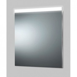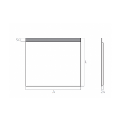 Se trata de una luna lisa de canto pulido con una gruesa franja arenada horizontal en la parte superior. La luz se proyecta por la parte frontal a través de la franja arenada y retroiluminada por la parte posterior. Elige entre fría, cálida o neutra, la luz que más se adapte a ti o a tu cuarto de baño. Disponible en todas las medidas bajo pedido. Para medidas que no aparecen en la web, no dudes en llamar para consultar la disponibilidad de la medida que tú necesitas. Personaliza los accesorios del espejo a tu gusto. Nos adaptamos a ti para hacerte la vida más fácil.